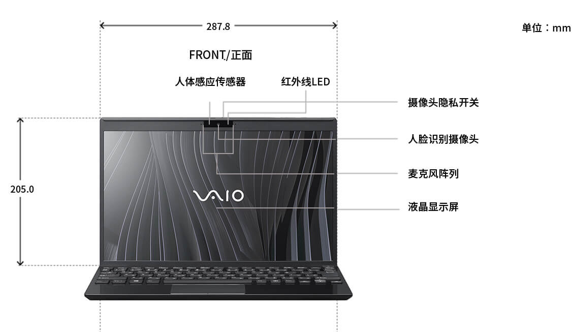 立体声麦克风阵列位于高性能前置摄像头两侧,是VAIO为提升降噪效率,提高录音质量而特别设计,清晰传达正面用户的声音。