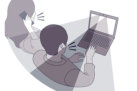 机身前端配置大直径立体声扬声器。 VAIO 优化后的Dolby Atmos®使远程会议的声音更清晰。在播放视频或音乐时,声音也更有质感。